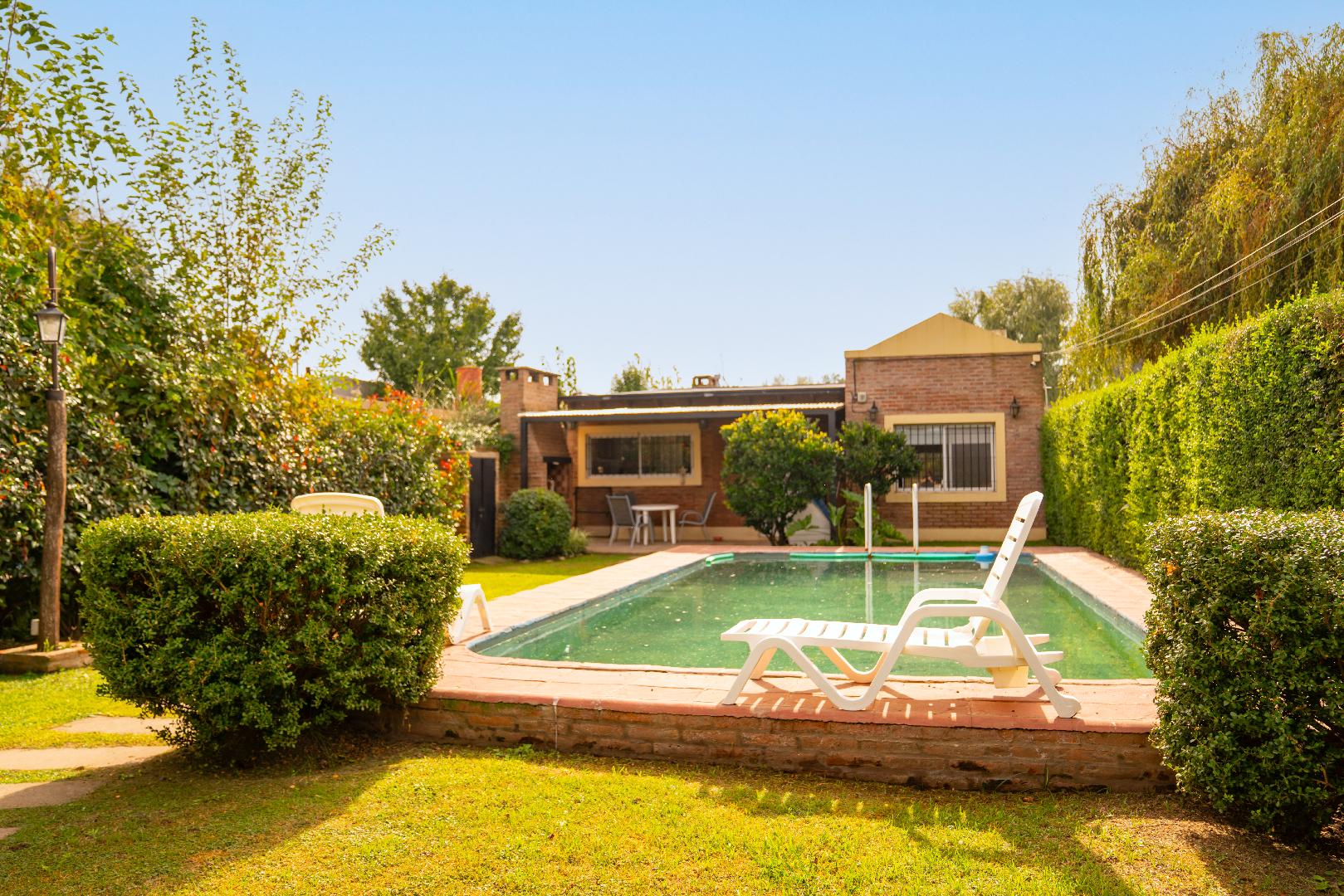 Hermosa casa quinta con pileta y espacios recreativos, equipada con aires acondicionados y dos baños, ideal para disfrutar en familia. Su lote amplio y entorno tranquilo la convierten en una excelente opción tanto para uso permanente como para fines de semana.